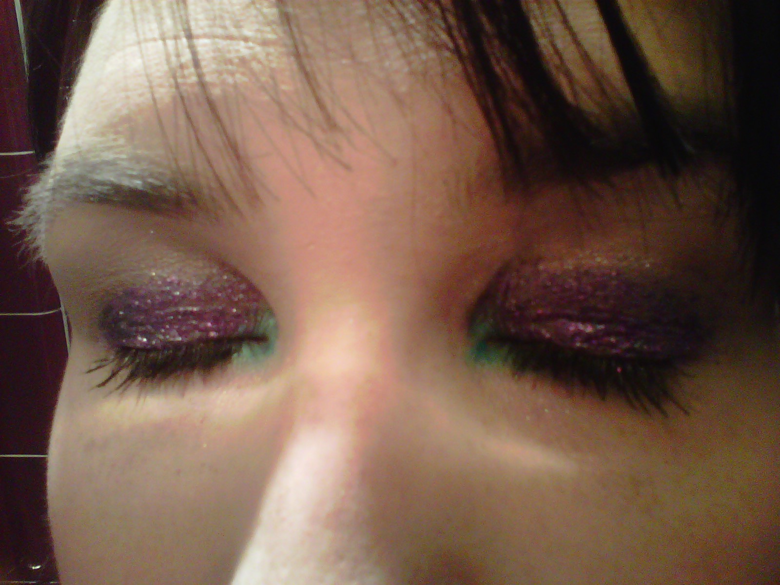 lid -Dawn Eyes Fantasy Flowers followed by NYX Purple Glitter (from the palette)